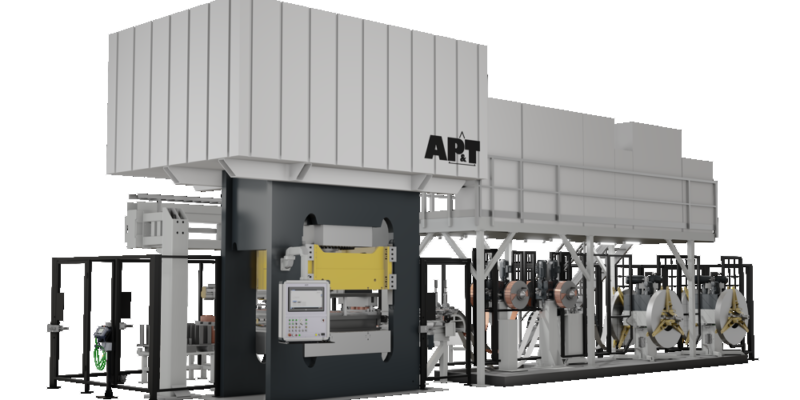 The core of the line is AP&T’s proprietary servo press, designed to significantly reduce energy consumption and operating costs.