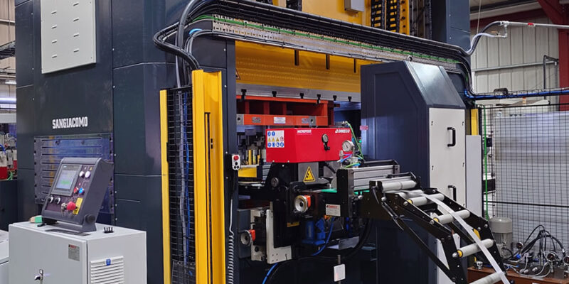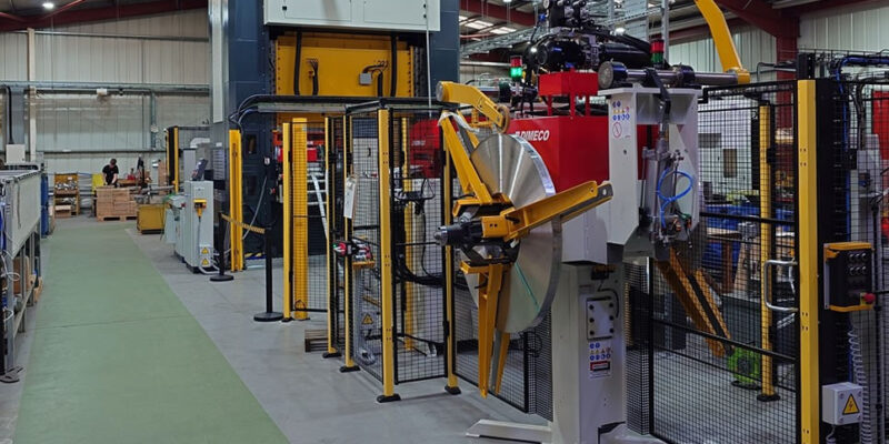 This turnkey production line comprises of a 400 Ton Sangiacomo straight side press, a Dimeco coil feeding line and a Norda in press transfer system.