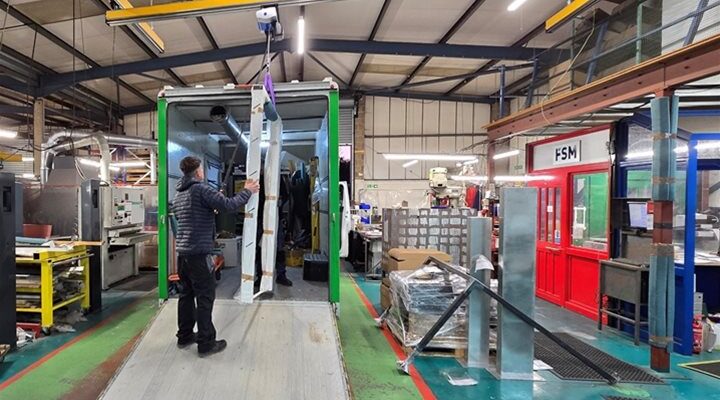 To support the increasing size and weight of the door units passing through its assembly area and to reduce the physical strain on our team, FSM Manufacturing have installed a new lifting system designed specifically for handling assembled doors, frames and heavy components.