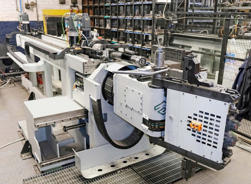 ERW (electric resistance welded) steel is processed mostly, plus high-tensile and stainless steels, ranging from 8 mm diameter solid bar up to 50 mm diameter tube, and wall thickness is up to 3 mm. More than 90% of tube is pre-processed with features and identification marks in a BLM LT5 tube laser cutting machine, also built in Italy, which was supplied in 2015 by the group subsidiary in Ampthill. This was another process that was formerly subcontracted out, so control over production became tighter and costs were lowered.